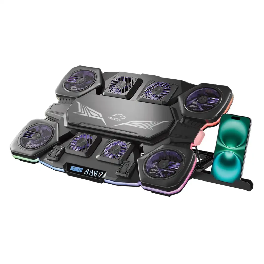 کول پد گیمینگ مدل GCLP 3154 برند TSCO تسکو-نور پردازی RGB با 10 حالت-تا سایز 19 اینچ-8 فن-تنظیم ارتفاع-گارانتی توسن سیستم