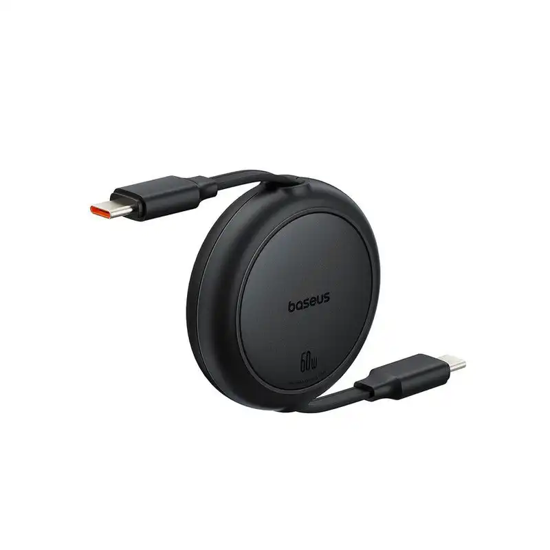 کابل شارژ TYPE C TO TYPE C مدل FREE2PULL برند BASEUS بیسوس مشکی – 2 کابل – فلت – جمع شونده – متراژ 1 – 100W