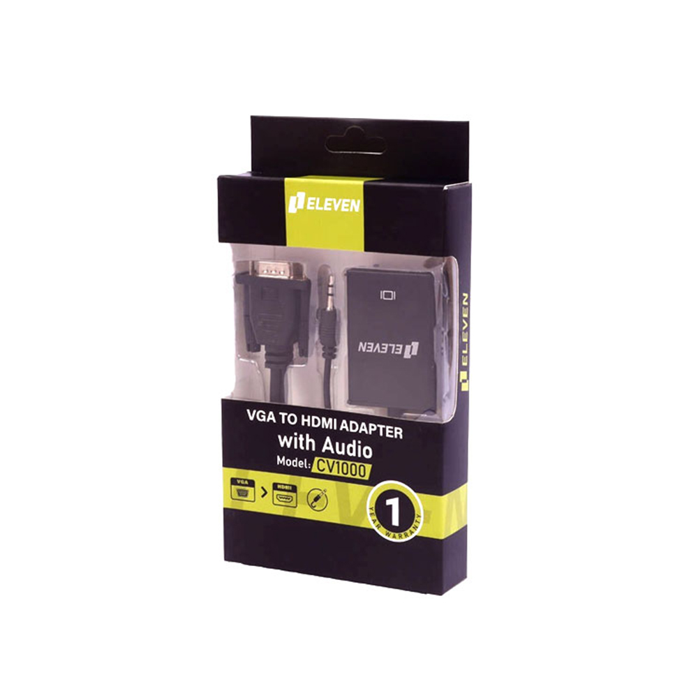 تبدیل VGA TO HDMI مدل CV1000 برند الون ELEVEN مشکی گارانتی رایان آروند 12 ماه