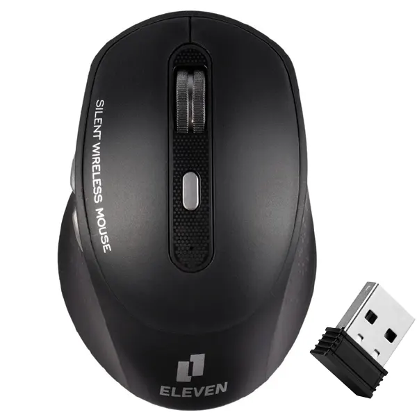 موس بیسیم مدل M911 برند ELEVEN الون مشکی – 6 کلید – بی صدا – گارانتی رایان اروند