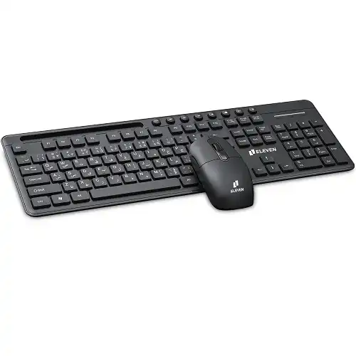کیبورد موس بیسیم WK801 برند الون ELEVEN بی صدا مشکی گارانتی رایان اروند 12 ماه