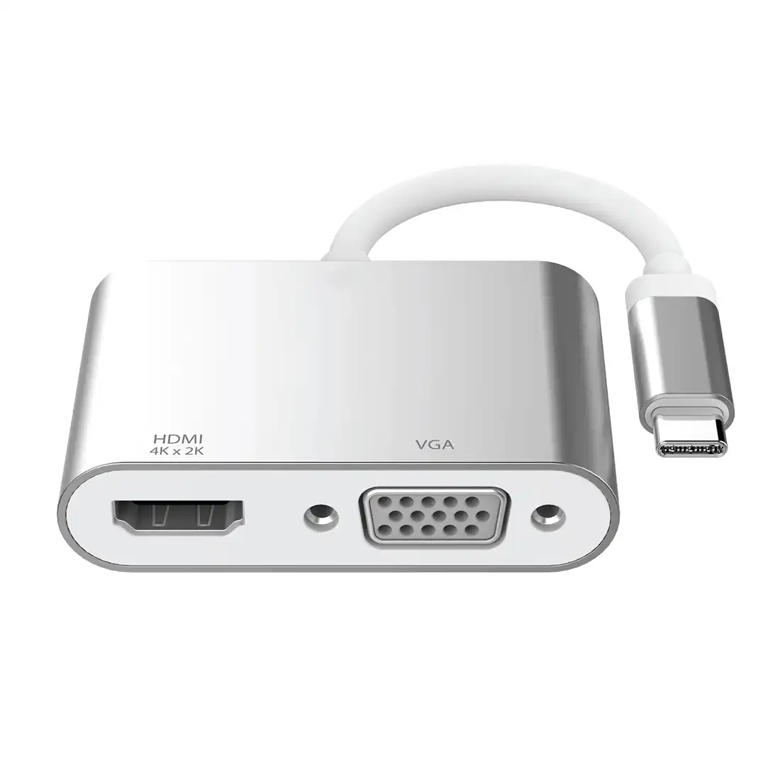 تبدیل TYPE C TO HDMI &VGA برند IFORTECH ایفورتک خاکستری – پک سفید