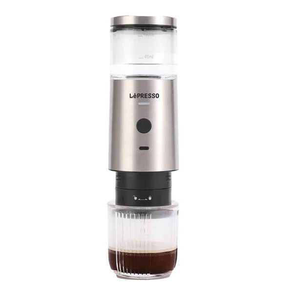 قهوه ساز همراه مدل POWDER برند LEPRESSO لپرسو – نقره ای STEEL&ABS – 100 MIL – MAH 2000 – 9BAR
