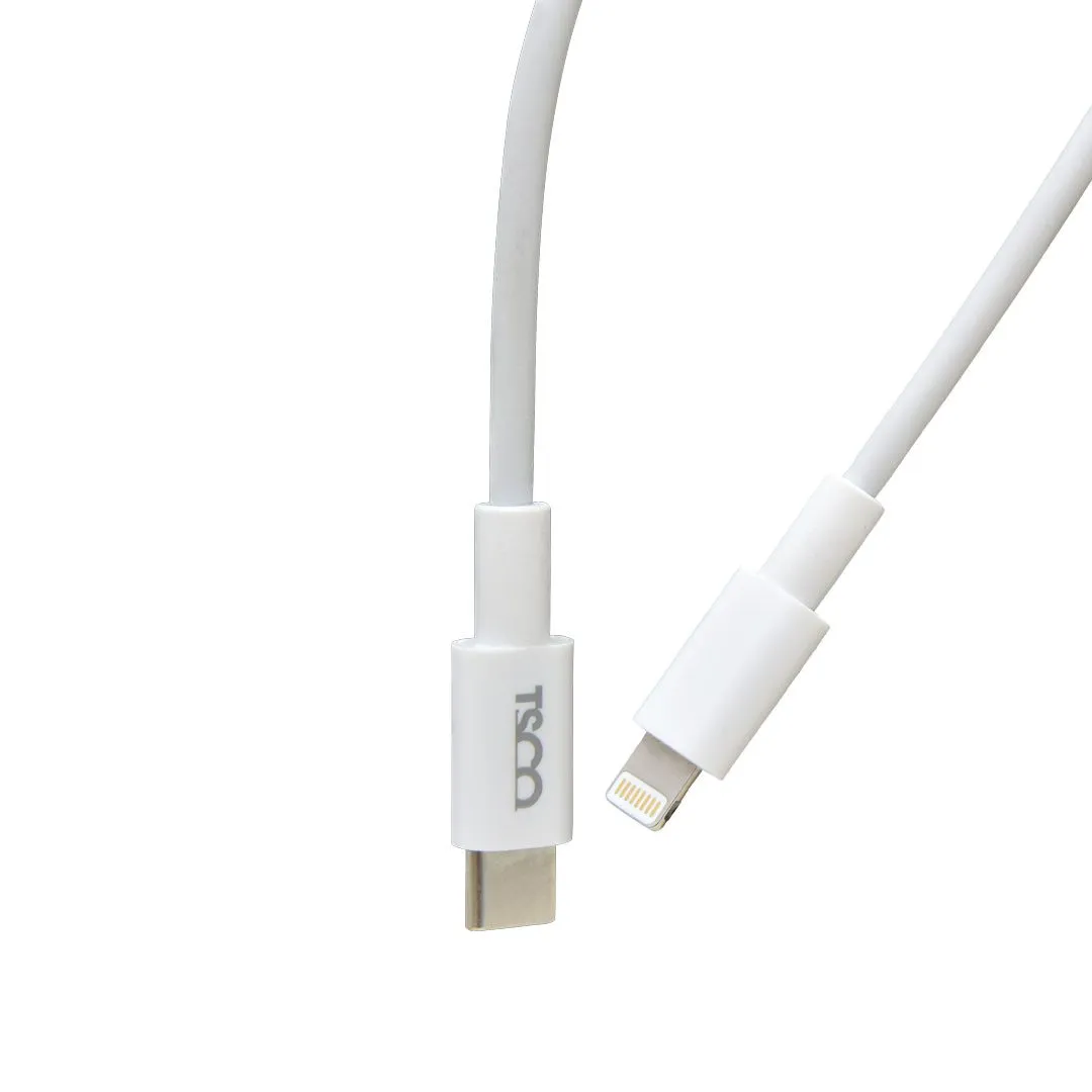 کابل شارژ TYPE C TO LIGHTNNG مدل TCPD207 برند TSCO تسکو متراژ 1 – سفید – 20W – گارانتی توسن سیستم