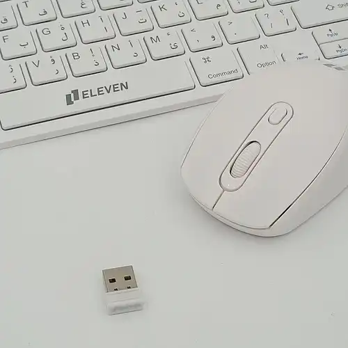 کیبورد و موس بیسیم مدل WK802 برند الون ELEVEN بی صدا سفید گارانتی رایان اروند 12