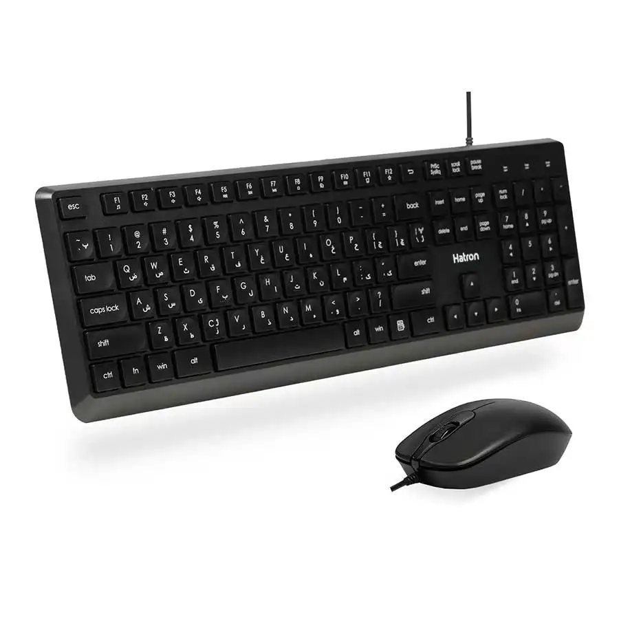 کیبورد موس سیم دار مدل HKC215 برند HATRON هترون مشکی – بی صدا – گارانتی فورتیم
