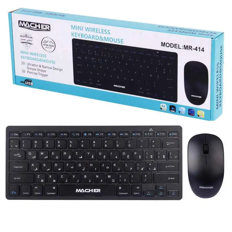 کیبورد و موس بیسیم مدل MR.W414 برند MACHER مچر مینی-مشکی