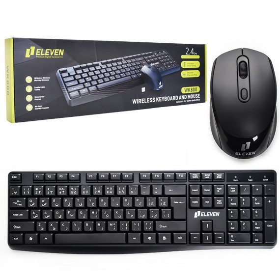 کیبورد و موس بیسیم مدل WK800 برند الون ELEVEN بی صدا مشکی گارانتی رایان آروند 12 ماه