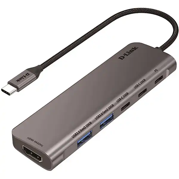 هاب TYPE C مدل DUB-C106 برند D-LINK هاب 6 پورت – نقره ای – گارانتی الماس