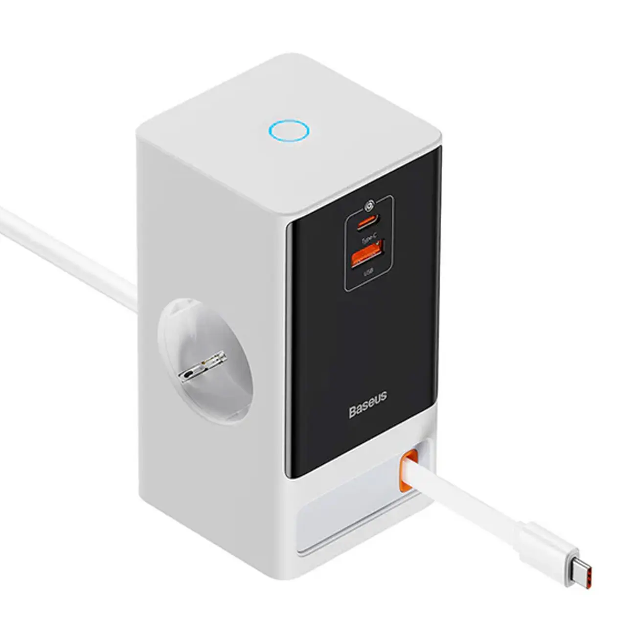 هاب شارژ مدل POWER COMBO (CCGAN64-SS2ACE) برند BASEUS بیسوس – سفید – AC*2 TYPE C*1 – USB*1 – 65W – گارانتی آونگ