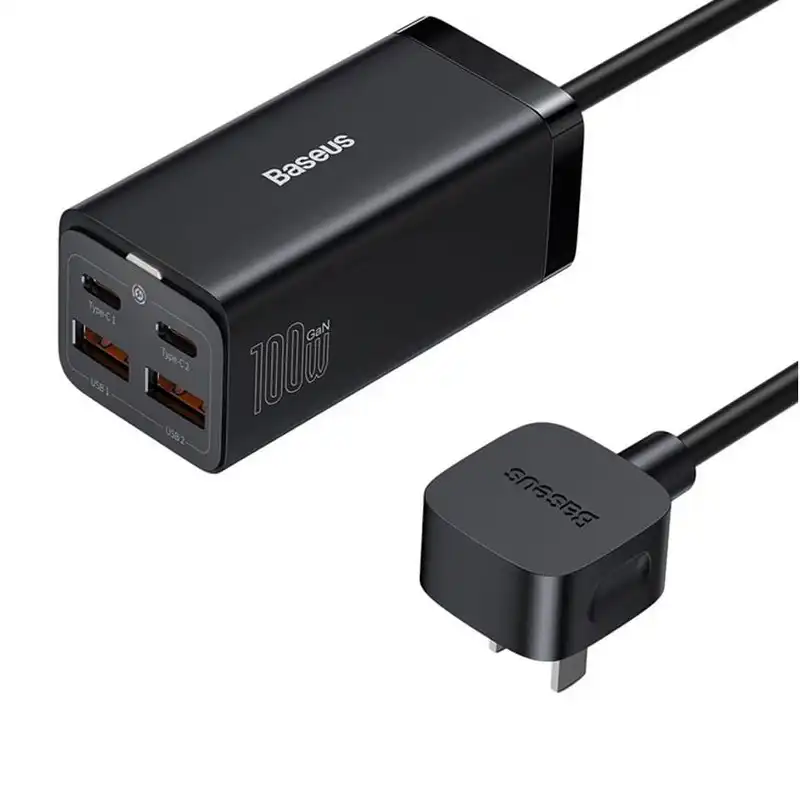 هاب شارژ مدل GAN 3 PRO (CCGAN100-1ACE) برند BASEUS بیسوس – مشکی – AC*1 TYPE C*2 – USB*2 – 100W – گارانتی آونگ