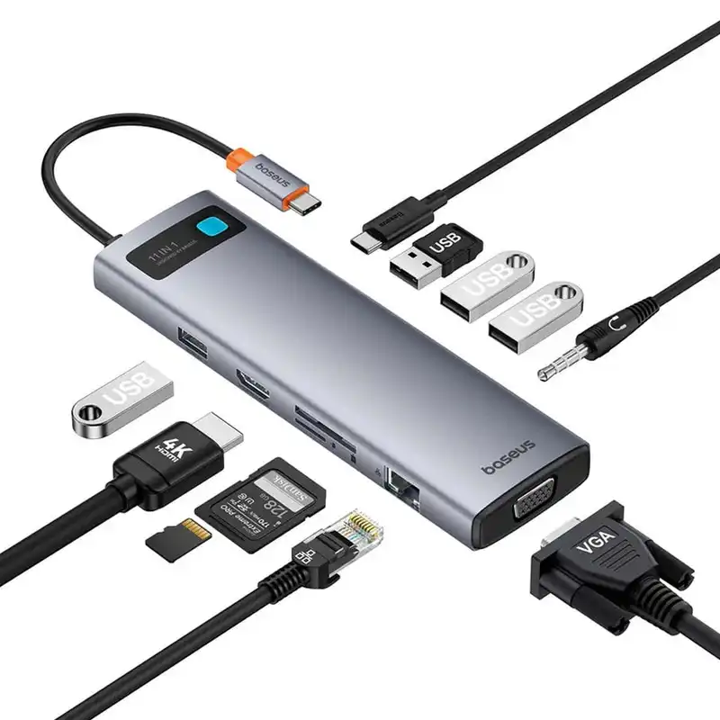 هاب 11 پورت TYPE C مدل OH147 برند BASEUS بیسوس – USB3.0*3 – USB2.0*1 HDMI – TYPEC – MICRO SD…گارانتی آونگ