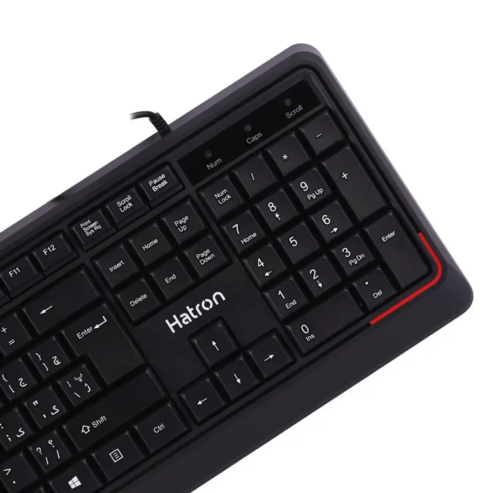 کیبورد سیم دار تک مدل 180 برند HATRON هترون مشکی – گارانتی فورتیم