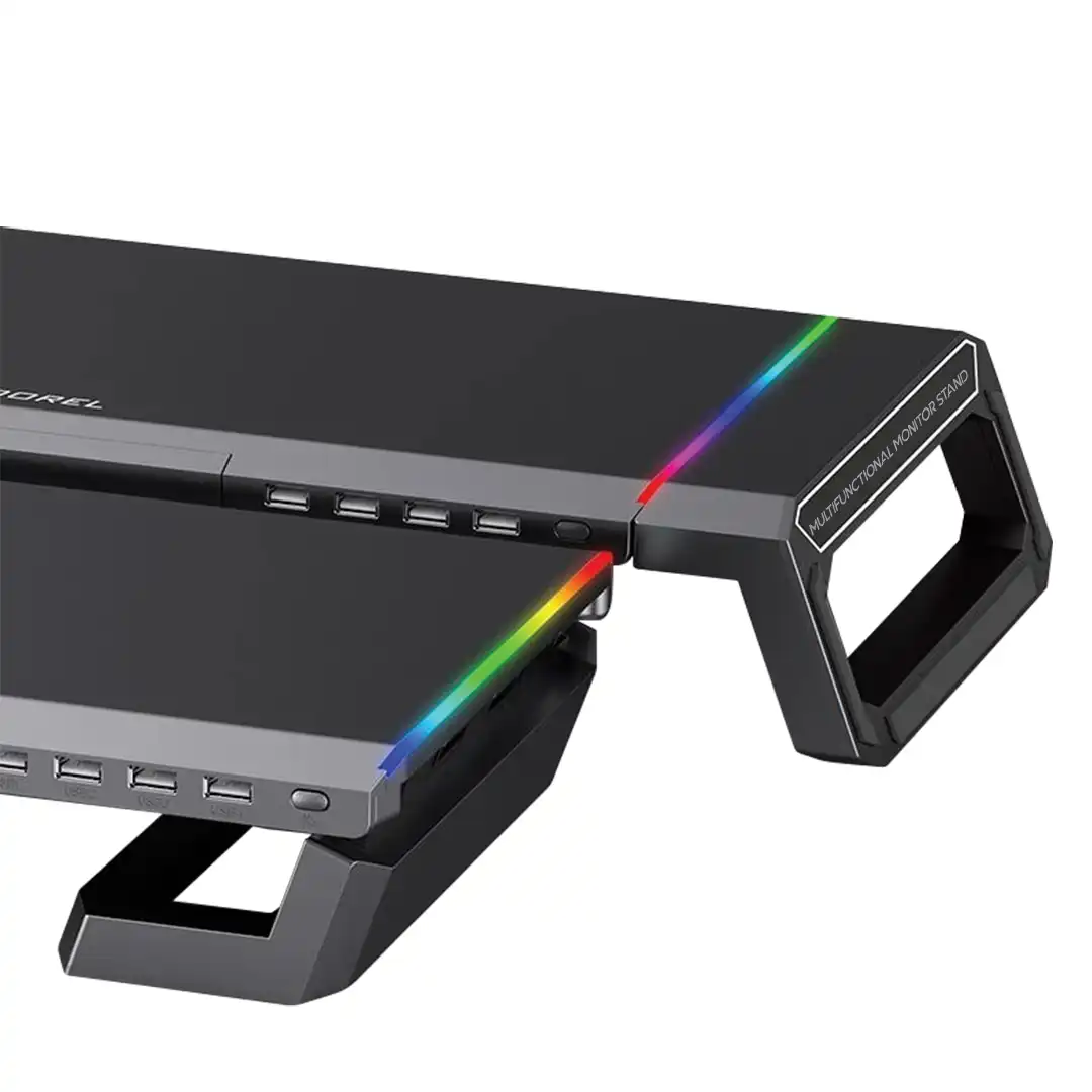 پایه نگهدارنده مانیتور گیمینگ مدل GMS 2034 از برند TSC (تسکو) یک پایه کاربردی و مدرن برای میزهای گیمینگ و کاری است که با طراحی شیک مشکی، نورپردازی RGB و بدنه مقاوم از پلاستیک و فلز، علاوهبر افزایش ارگونومی، به زیبایی فضای کار یا بازی شما کمک میکند. این محصول دارای ۵ پورت USB، دو حالت تنظیم ارتفاع و امکانات جانبی متنوع است که آن را به انتخابی مناسب برای کاربران حرفهای تبدیل میکند.