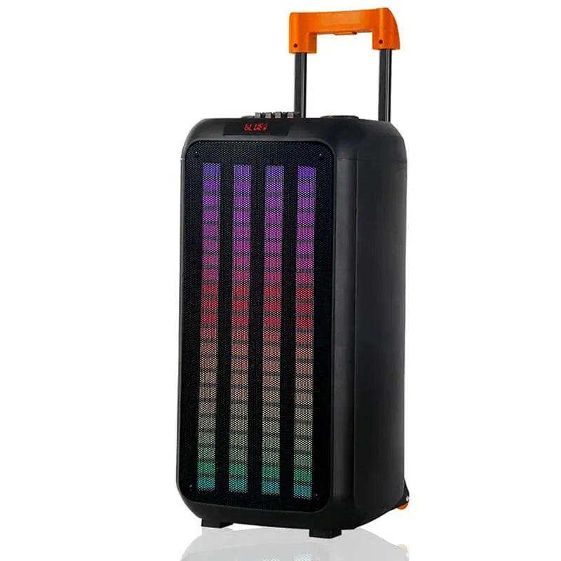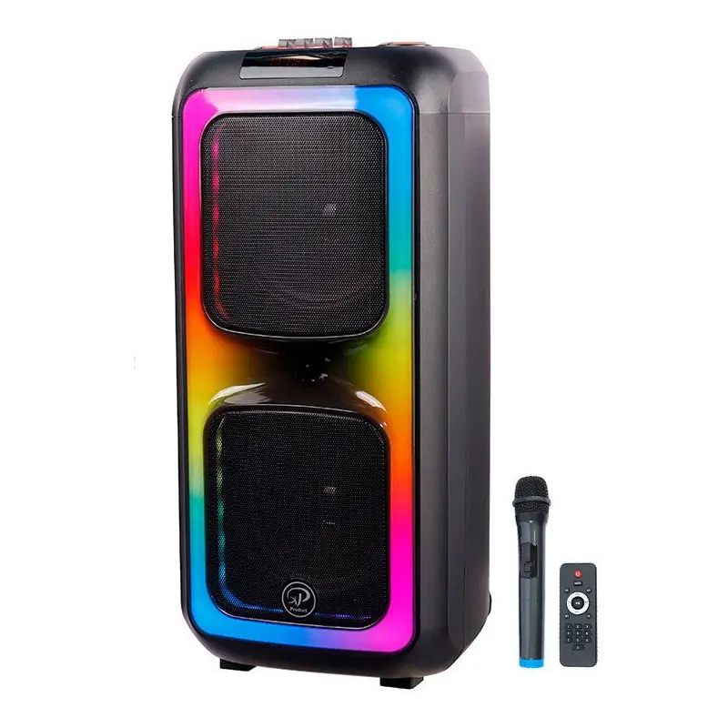 اسپیکر پارتی باکس XP مدل 1214M با دو ساب 8 اینچی، انتخابی قدرتمند برای مهمانیها و فضاهای بزرگ است. این اسپیکر از اتصال بلوتوث و پخش از USB، کارت حافظه و AUX پشتیبانی میکند. وجود نورپردازی RGB، نمایشگر دیجیتال و رادیو FM، تجربهای جذاب و کامل از پخش موسیقی ایجاد میکند. طراحی چمدانی با دسته کشویی و چرخ، جابهجایی آن را آسان کرده است.