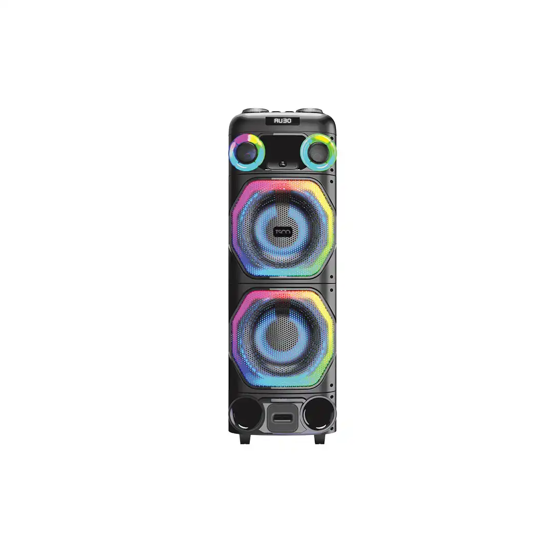 اسپیکر TS1919 مجهز به یک نمایشگر کوچک است که وضعیت فعلی دستگاه و حالتهای مختلف آن را نمایش میدهد. این نمایشگر به کاربران کمک میکند تا بدون نیاز به حدس زدن، بدانند دستگاه در چه حالتی قرار دارد یا چه ورودیای فعال است. همچنین، پنل کنترل حرفهای این اسپیکر شامل دکمههایی برای تنظیم حجم صدا، باس، تریبل، و اکو میکروفون است. یکی از ویژگیهای برجسته اسپیکر TS1919، قدرت خروجی بالای آن است. این اسپیکر با توان خروجی PMPO معادل 22000 وات و RMS برابر با 80 وات، قادر است صدایی فوقالعاده قدرتمند و شفاف تولید کند.