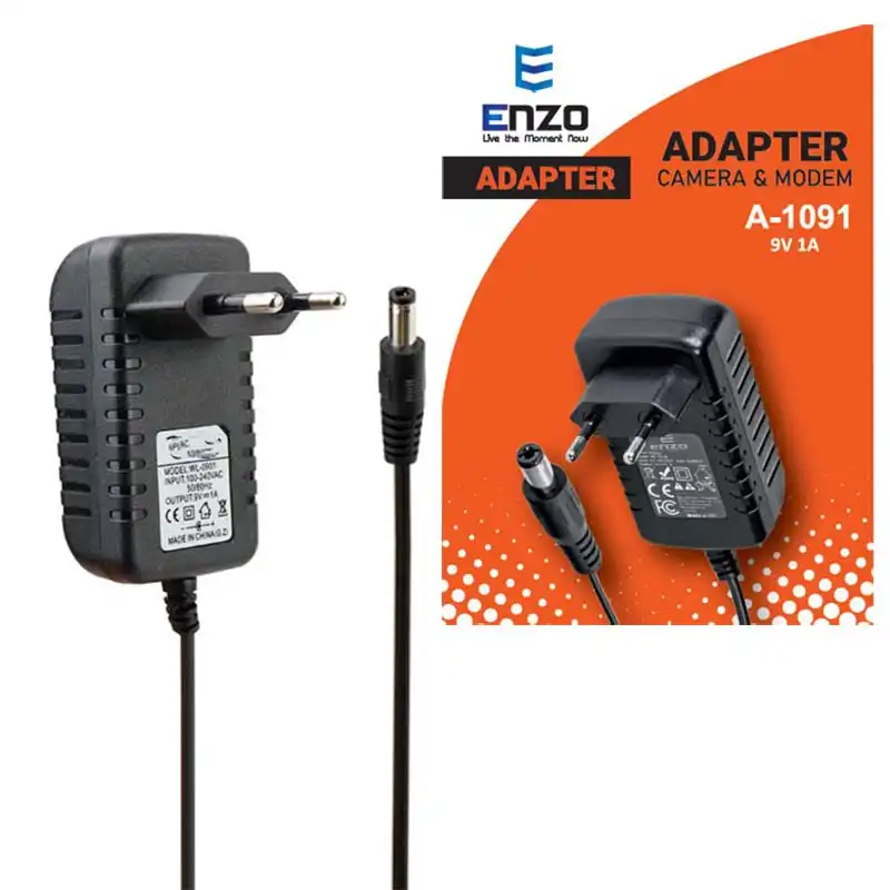 اداپتور دیواری مدل A-1091 برند ENZO انزو 9V – 1A – مشکی – گارانتی انزو سرویس