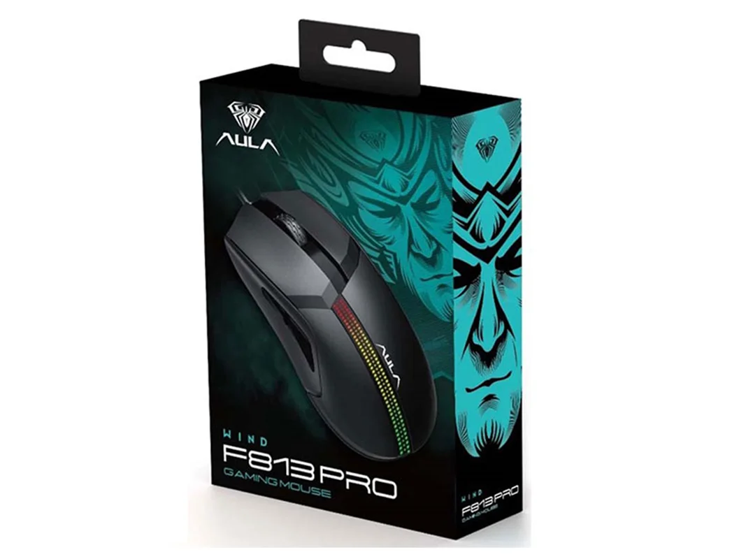 موس سیم دار گیمینگ مدل F813 PRO برند AULA آئولا 12400DPI – مشکی – گارانتی انزو سرویس 12 ماه
