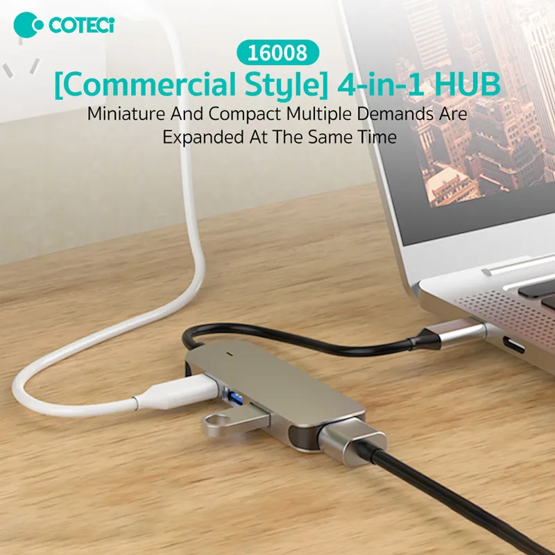 هاب 4 پورت TYPE-C مدل 16008 برند COTTECI کوتسی HDMI* 1 -USB3* 2 – TYPE-C *1