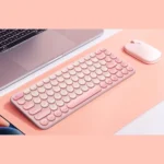 کیبورد بیسیم تک مدل K01 برند BASEUS بیسوس صورتی – بلوتوث – دانگل – گارانتی آونگ