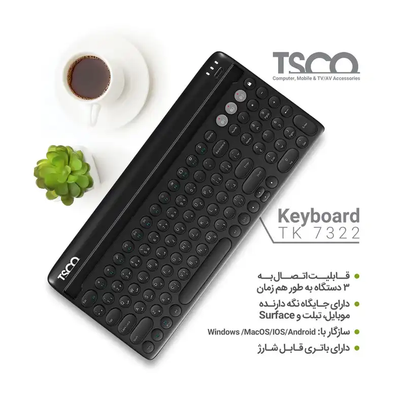 کیبورد بیسیم مدل TK7322BT برند TSCO تسکو سفید – بلوتوث – گارانتی توسن سیستم